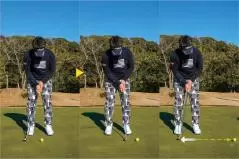 急勾配になればなるほど、手とヘッドを前にゆっくり出す人がいますが、これでは支点がズレて緩みやすくなるので注意しましょう。