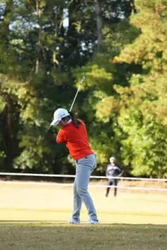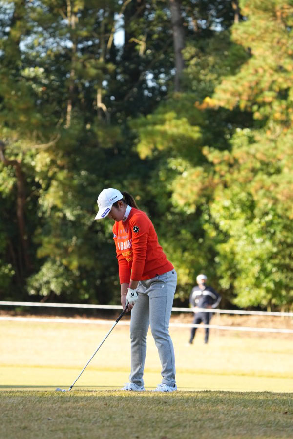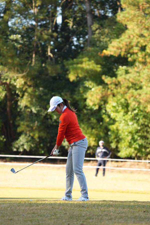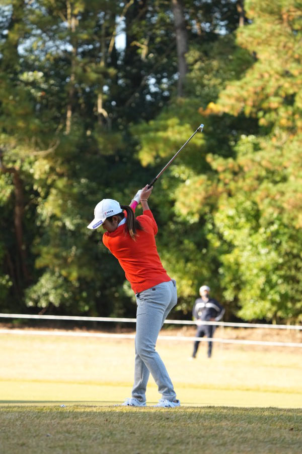 稲見萌寧 アイアンスイング(斜め前方)|インパクト
