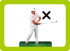 ただし、普段からヘッドが上から入りすぎるクセがあるという人は、それを抑制するイメージとして練習するのもいいでしょう。