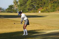 原英莉花のアイアンスイング(ラフからのアプローチ)連続写真。