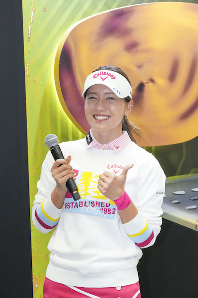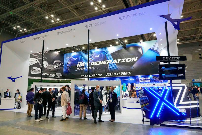 ブランドアンバサダー・西郷真央の優勝で幸先の良いスタートを切ったミズノでは試打ブースが充実。西郷が使用するST-X220ドライバーをはじめ、ゴルファーが憧れるミズノプロアイアン221、223、225、FLI-HIの打ち心地を体験できる。
