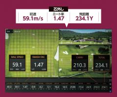 フェース中央、トゥ側、ヒール側 の3か所で試打計測。注目は ヘッドスピード40m/s以下でも 高初速・高ミート率であること。エネルギー効率が相当優れて いる証拠だ。打点のブレにも強 いトゥ側はご覧の通り。ヒール側はトゥ側ほどではないものの右 への曲がりがほぼなく、飛距離 は200ヤードを超えた。