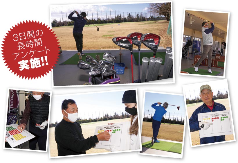 各モデルを試打してもらい「飛ぶ・曲がらない・使いたい」という3つの項目に対して評価(複数回答有り)をしてもらった。