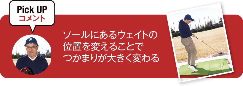また、このドライバーの特徴は、大慣性モーメントなのに“当たりやすい”ところ。ヘッドに“振られる”感覚がなく『振り抜きやすい』『ウェイトの位置を変えても振り感が変わらない』というコメントも多かった。これは、ソールの「RMX VDウェイトシステム」を調整してつかまり具合を変えても、その当たりやすさ、振り抜きやすさが変化しない『RMX VD59ドライバー』ならではの評価だろう。