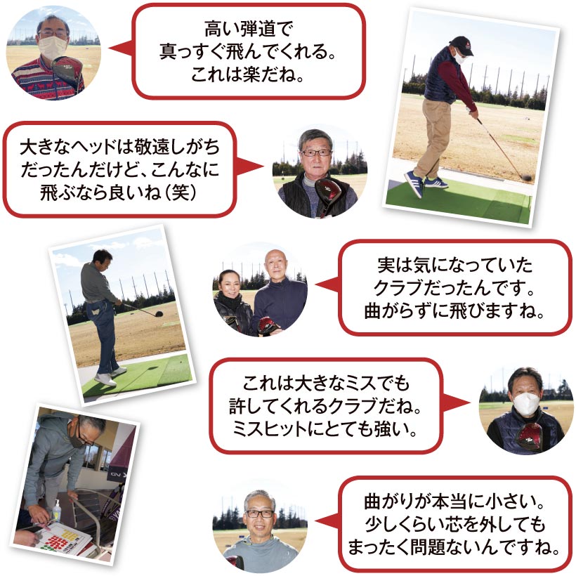 だが、試打をしたアマチュアの多くは『適度なつかまりとやさしさで、難しいという印象はない』とコメント。そのコメントの通り、つかまえきれずに右に打ち出してしまうという人は数えるほどだった。