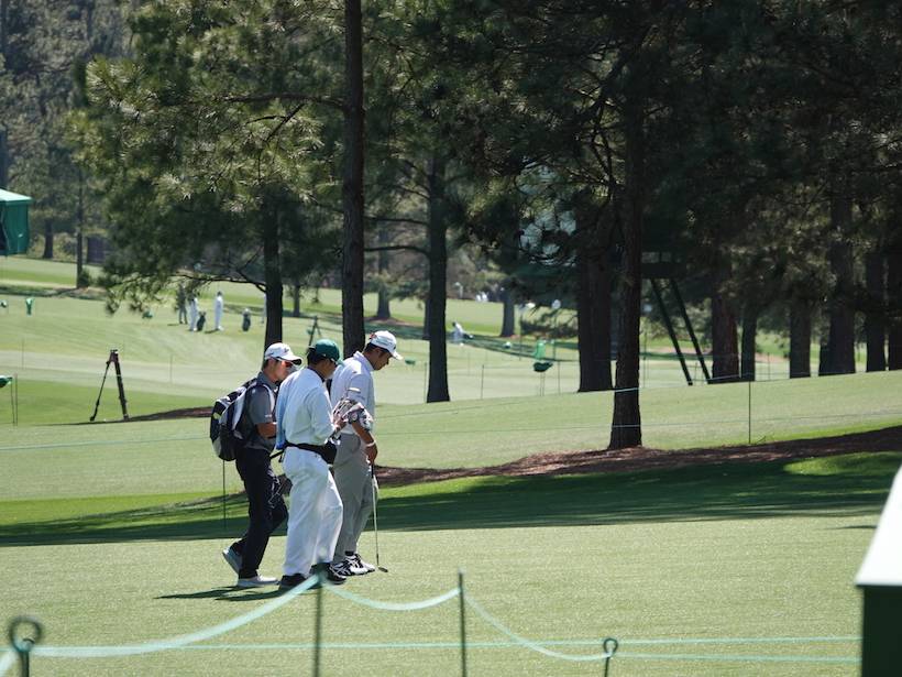3日(日)の午後、日本人出場選手3人がマスターズ会場に揃って姿を見せた。練習グリーンに集まった3人は数十分間談笑。ジェスチャーを交え、時折笑顔をみせながらの会話を楽しんだ。
