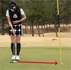ショートパットはロングパットと違って、距離感よりも正確な方向性が要求されます。そのためにはフェース面をカップに真っすぐ向けることが絶対条件となります。カップの直径は10・8センチで、お酒の一升瓶の直径と一緒です。ところがアドレスやインパクト時のフェース向きが少しでもズレると、1メートルのパットでも入らないのです。多少曲がるラインもありますが、カップまでしっかり届かせるくらいのタッチで打ちますから、基本的にはカップをストレートに狙う気持ちで打つのがベストといえます。