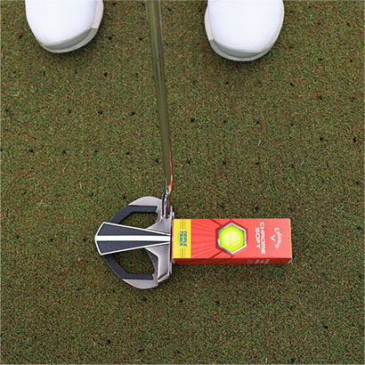 10メートル近くのロングパットの練習はコースの練習グリーンでないとなかなかできませんが、ショートパットの練習ならパターマットを活用するなど工夫次第でいくらでも出来ます。フェース面を真っすぐセットし、スクエアフェースでインパクトすることがショートパットの極意。そこで私がオススメしたいのはボールの代わりスリーブ箱を打つ練習です。スリーブとはボール3個入りの箱ですが、これを真横において箱の右面にフェース面を真っすぐ当てて構え、インパクトでもフェース面を真っすぐ当てましょう。フェース面をスクエアにキープし、ストレートにヒットする感覚が養われてショートパットが入る回数が増えてくるはずです。3パットや4パットが激減すれば100切りはバッチリですよ!