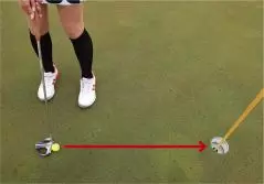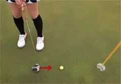 私の場合はフェース面をセットするときはパターを右手に持ちます。そして左手をお腹に当てて、カラダの向きがラインと平行にセットできているかを確認しながらアドレスを作るようにしています。アドレスの手順は人それぞれで構いませんが、フェース面をカップに真っすぐ向けることだけは必須です。そこでボールを置くときにボールの線をカップに向けるといいでしょう。ボールに細い線が刻印されているブランドもありますし、私のようにボールにマジックで線を書き込む人も多くいます。