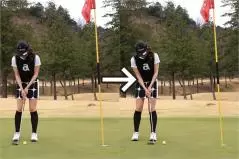 ロングパットは振り幅が大きいため、ストローク軌道はイン・トゥ・インの緩やかな曲線を描きます。ショートパットの場合はロングパットと比べて振り幅がかなり小さくなるため、基本的にはストレート軌道で振ります。テークバックでフェース面を真っすぐ引き、インパクト後もフェース面を真っすぐ出していく感覚です。ボールの線をカップに向けておくことで、パターをストレートに振って、ボールをストレートに打ち出すイメージを出しやすくなります。インパクトで左手首が甲側に折れないように注意して、振り子のイメージで左右対称に振りましょう。アドレス時の右手首の角度をキープする意識でもいいですが、右利きの人なら器用な右手より鈍感な左手を意識するほうが手首の角度が変わりにくいと私は思います。自分で試してみてください。