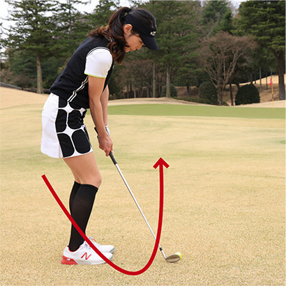 アプローチは背中の軸とアドレス時の三角形をキープ!
