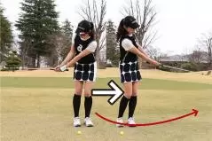 もう一つ、重要なポイントとしてスイングリズムを取り上げたいと思います。振り子のイメージで左右対称形にスイングできるようになるためにもリズムの一定化につとめましょう。