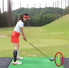 最後にスライスの矯正法をアドバイス。スライスがよく出る人はアウトサイドインの軌道で、フェースが開いて当たるのは原因であることが多いので、軌道修正の練習をしましょう。用意するのは500ミリリットルのペットボトルだけ。これをボールの真後ろのやや外側に置きます。アウトサイドインの軌道になる人はダウンスイングでクラブヘッドがペットボトルに当たってしまいます。ペットボトルに当たらないようにクラブをインサイドから下ろしてくるとインパクトでフェースがスクエアに戻りやすく、スライスが軽減されてドライバーの方向が安定しやすくなりますよ。