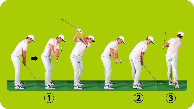 テークバックは、ヘッドが後方に真っすぐ上がっていくイメージ。ダウンスイングでは、手をカラダに近づけていくイメージでインサイドに振り抜いていく。左サイドに打ち出される打球をイメージすると、より正確に打ちやすくなる。