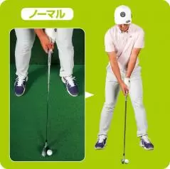 まず、アドレスでは、ほんの少しだけカラダとボールとの距離を近づけて立ちます。
