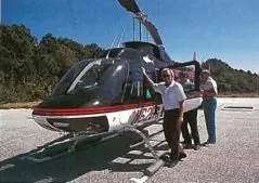 自慢の自家用ヘリコプター 機体にはやはり鮫のマーク