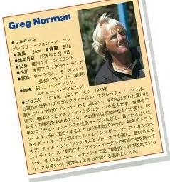 ☆現在の世界のプロゴルフツアーにおいてグレッグ・ノーマンは、最もカリスマ的なプレーヤーかもしれない。その並はずれた高い技術で、彼はいつもエキサイティングなシーンを生み出す。世界中で数多くの勝利をおさめており、その勝利は感動的なものが多い。昨年のロイヤル・トルーンでの全英オープンなども、負けたとはいえゲームを十分に面白くするとともに感動的であった。昨年のドラルライダー・オープンではポール・エイジンガー、マーク・カルカベキア、ティム・シンプソンの3人とプレーオフを演じ、最初のエキストラ・ホールで劇的なチップイン・イーグルで有終の美を飾っている。多くのメジャートーナメントで逆に劇的な1打で敗れているケースも多いが、実力No1と誰もが認める選手といえる。