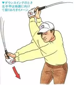 ダウンスイングのとき左手甲は地面に向けて振りおろすイメージ