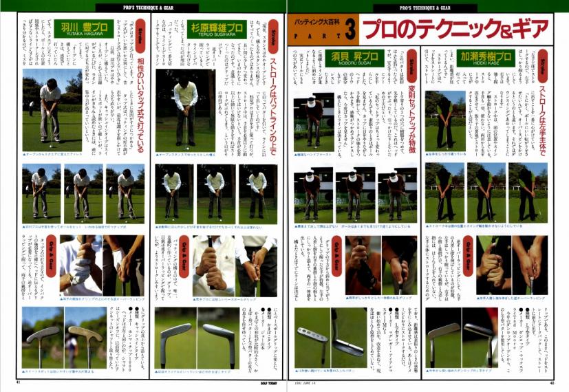 そこでパート3にプロが実際にどのようにグリップして、どのようにストロークしているのか、使用パターは?ということで12名のプロをピックアップして掲載。グリップだけでもオーソドックスな、逆オーバーラッピング始め、杉原輝雄のようなベースボールグリップもあり、見るだけで参考になるビジュアル企画です。