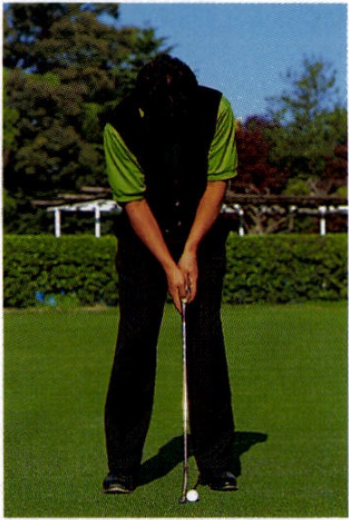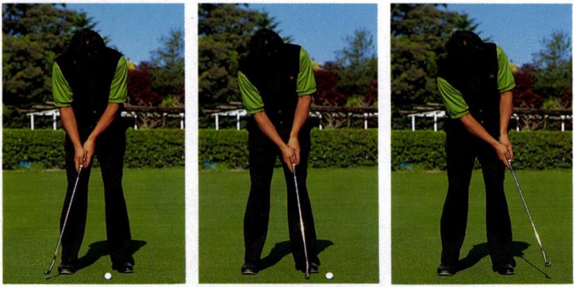 「わたしのセットアップはちょっと変わっているんです。素振りのときはボールをみません。カップに目をやりながら手を動かして、ストロークの強さをつかみます。感触がつかめてアドレスしたら今度はカップを見ません」
