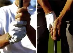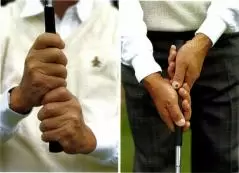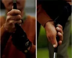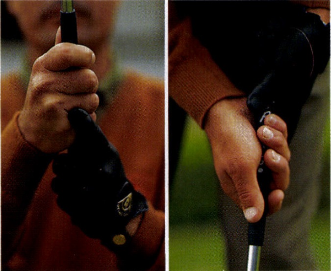両手の親指をグリップの上にのせる逆オーバーラッピング