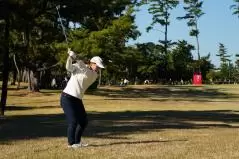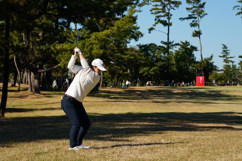 西郷真央 アイアンスイング(ラフ)|バックスイング①