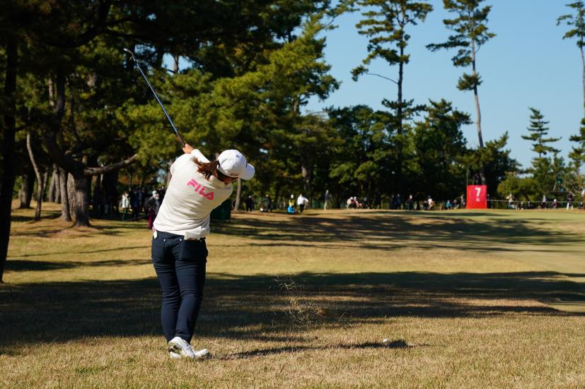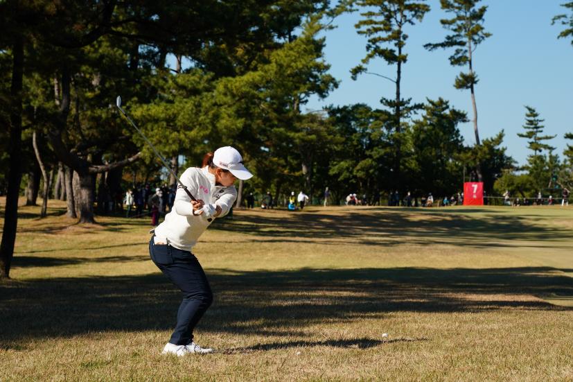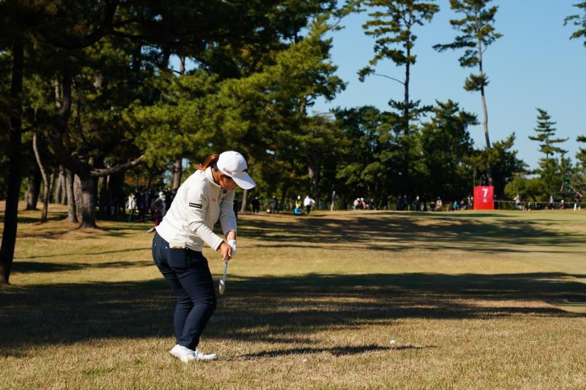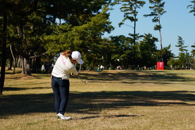 西郷真央 アイアンスイング(ラフ)|インパクト