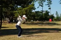 西郷真央 アイアンスイング(ラフ)|切り返し(トップ)