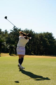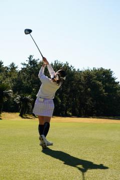 西村優菜 ドライバースイング(斜め後方)|フィニッシュ