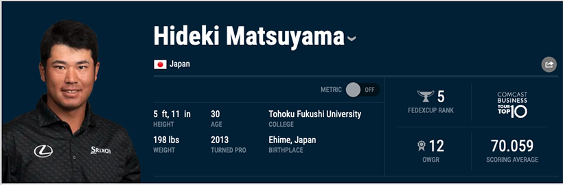 松山英樹の直近メジャー8試合成績