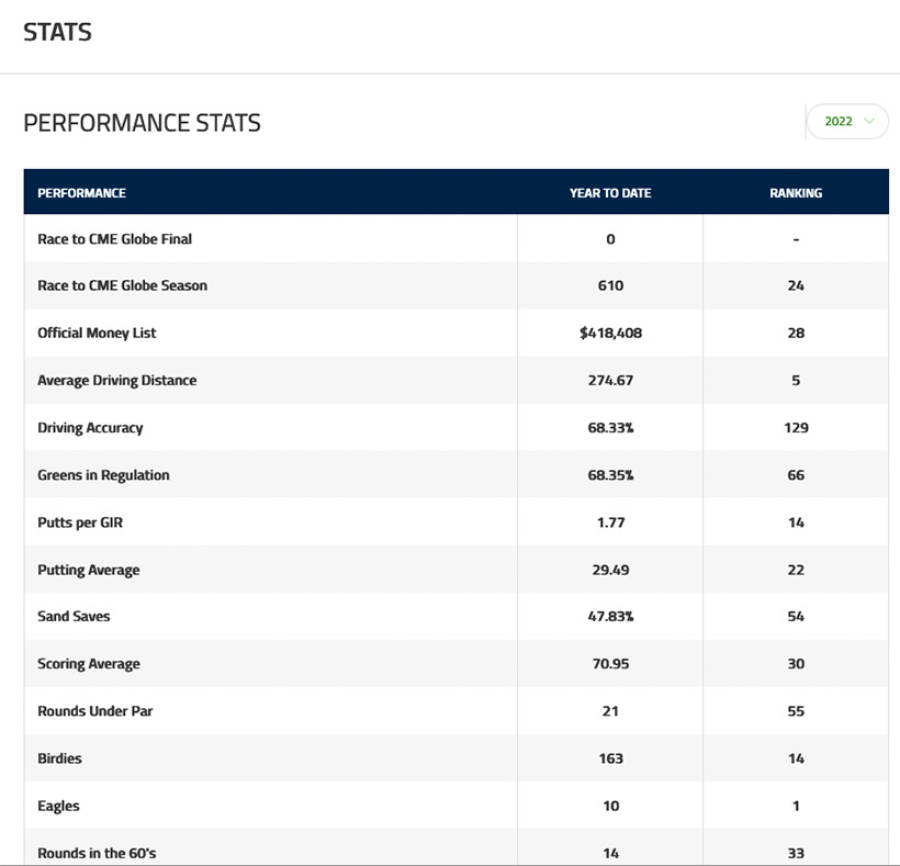 今季の米女子ツアーは34試合が予定されており、全米女子プロは16試合目。シーズン折り返し前の時点でイーグル10個は、かなりのハイペースである。