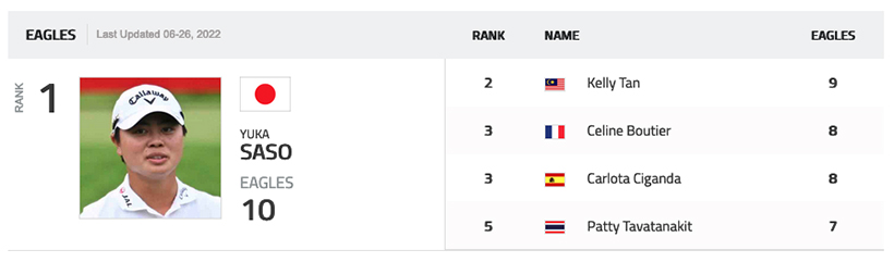 米女子ツアー今季イーグル数ランキング(全米女子プロ終了時)