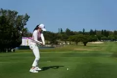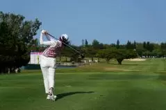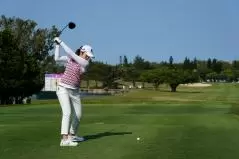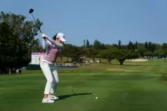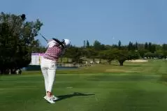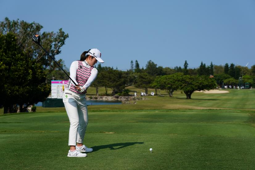 稲見萌寧 ドライバースイング(後方)|フォロー①