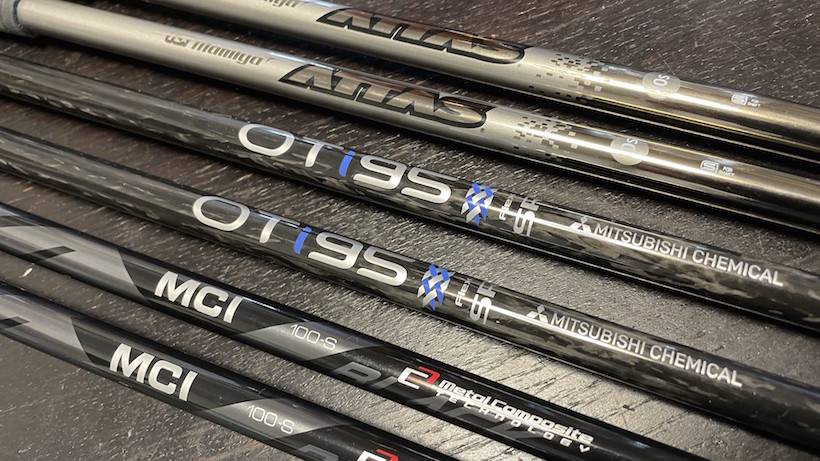 (T島)そうですね・・今、4セットありまして、スチール2セット、カーボン2セットで、基本的にカーボンシャフトがエースです。10年前ぐらいに肘を痛めてからカーボンを使い始めましたね。それからずっとカーボン、昨年は日本シャフトさんのモーダス130(R)とかモーダス115とかスチールに浮気していましたが、また三菱ケミカルさんのOTi95とかUSTマミヤのATTASアイアンなどに戻しております。
