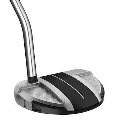 3本のサイトラインを備えたアライメント効果の高いマレット型パターです。真ん中だけでなく上下にも線があることで、ヘッドの大部分に太いラインが入っているように見えるため、自然にまっすぐストロークできます。