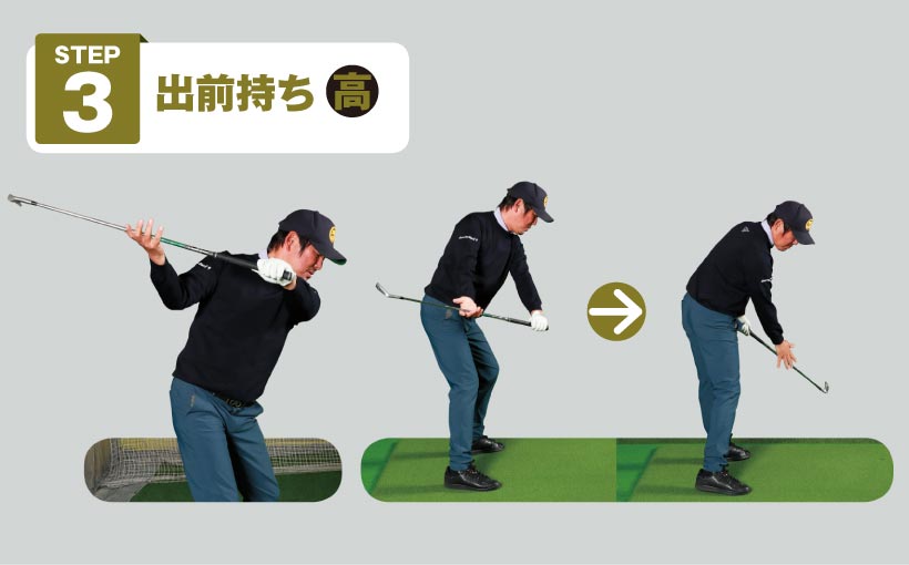 ただし、この〝ヒール下げターン〟はスティープ(アップライト)軌道には合わない、と森プロ。