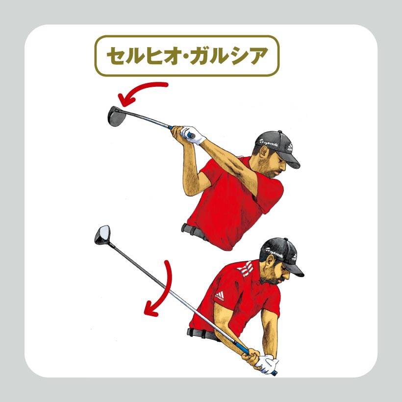 「ガルシアはホーガンよりコッキングが浅いぶん、切り返しでヘッドを背面から落とす動きが明確。手元がヘッド軌道のプレーンの上から大きく下がるため、シャフトも大きく動き、フェースターンも余裕をもって行えます。だから、自由に弾道を操れます」