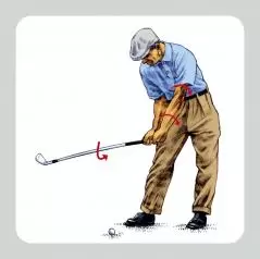 「カット軌道をとことん嫌ったホーガンは、切り返しでヘッドを背面からプレーンの下に落とす動作を促すドリル紹介しています。一見、振り遅れそうですが、たぐり動作とスナップ動作で確実に戻せる、つかまえることができるスイングのための準備動作と言えます」