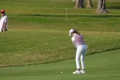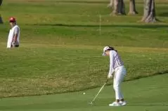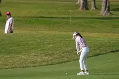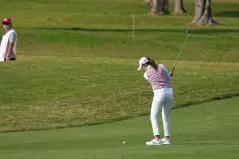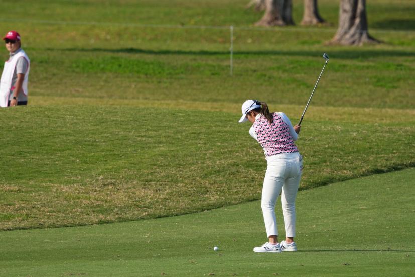 稲見萌寧 アイアンスイング(斜め前方)|インパクト