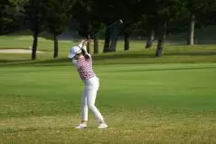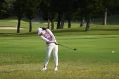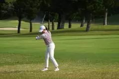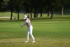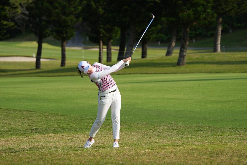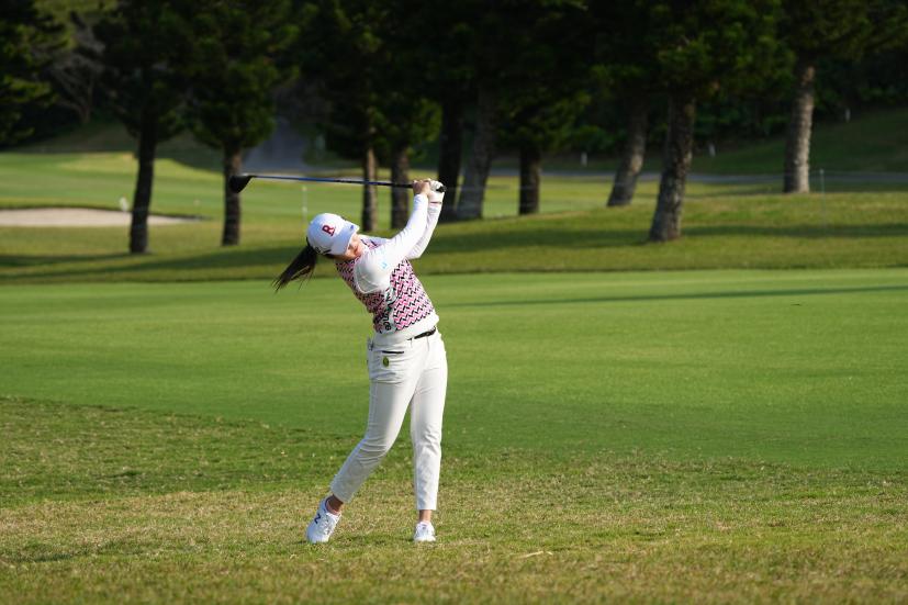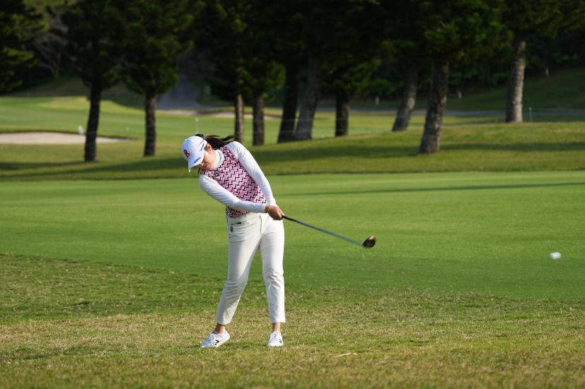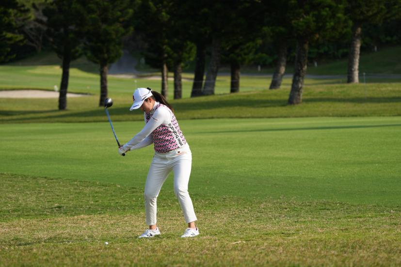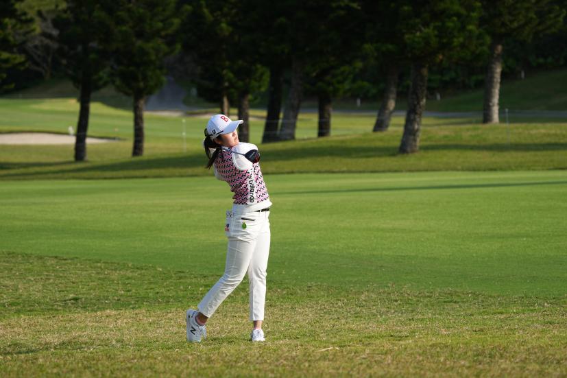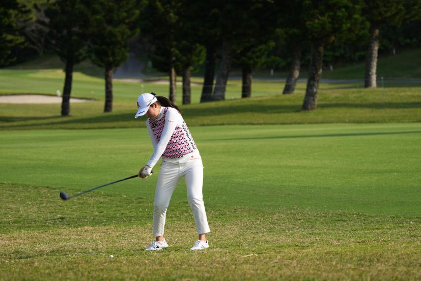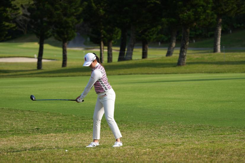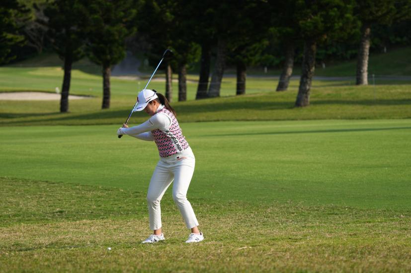 稲見萌寧 フェアウェイウッドスイング(ラフ)|フォロー①