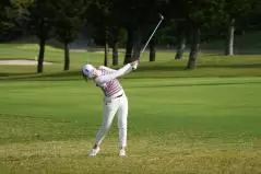 稲見萌寧 フェアウェイウッドスイング(ラフ)|切り返し(トップ)