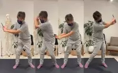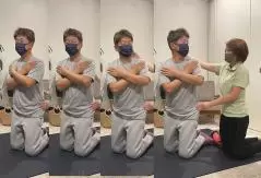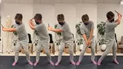 そして次は寝返りです。正しい寝返りができていないでしょってことで、寝返りのやり方を教えてもらうんです。寝返りに正しいも何もないと思ったんだけど、先生の見本を見るとめちゃくちゃスムーズに寝返りができているんですよ。それに比べて僕の寝返りはめちゃくちゃぎこちない。実は寝返りの動きがスイングと関係してるんですよ。下半身から回転を始めて、手は最後に付いてくるわけ。捻転差がちゃんとできるってことですな。赤ちゃんのときにはこういう動きが自然とできているそうですが、大人になってくるとできなくなるんです。