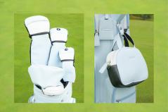 ついつい、クラブにばかり目が行きがちなのだが、特にレディスセットのバッグ類に注目してほしい。ヤマハのこだわりが込められている。ベビーブルーを基調とした可愛さと清潔感のあるカラーリングに加え、カバー類とバッグは統一されたデザイン。さらに、アイアンカバーとラウンドバッグまでセットされている。さらにさらに、キャディバッグはキャスターと収納式の引手で、移動時に引いて運べるようになっているのだ。