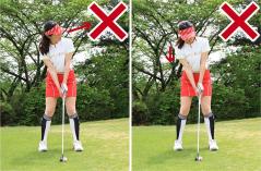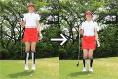 確かにそんな失敗が多いな〜と思った人に対策法をアドバイス。ショット前に軽いジャンプを2〜3回繰り返しましょう。ジャンプはカラダをリセットする効果が高いですし、バランスを整えるためにもぜひやってください。そしてアドレスを作るときは上体を真っすぐにして、クラブを真上からゆっくりと地面に下ろします。ドライバーショットの感覚がスーッと消えて、アイアンショットにマッチしたアドレスが作りやすくなります。