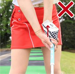 アイアンでもっとも多いミスといえばダフリでしょう。ボールを上げたい心理からしゃくり打ちになるのが一番の原因ですが、ダフリが出やすい人に共通しているのはインパクトで右手のヒラが上を向いてしまうこと。フェースが開いて当たるのでシャンクの原因にもなります。そこで練習するときは通常のグリップを作ったら右手の人さし指を伸ばし、グリップの真横に添えましょう。インパクト時に人さし指でクラブを右横からアシストしてあげれば、右手のヒラが上を向いてしまう欠点が解消されてミート率がアップしますよ。