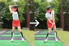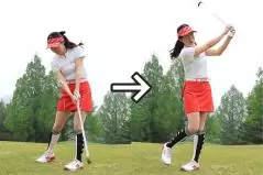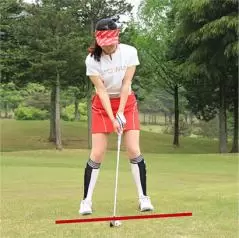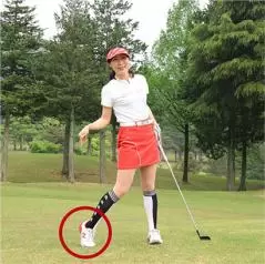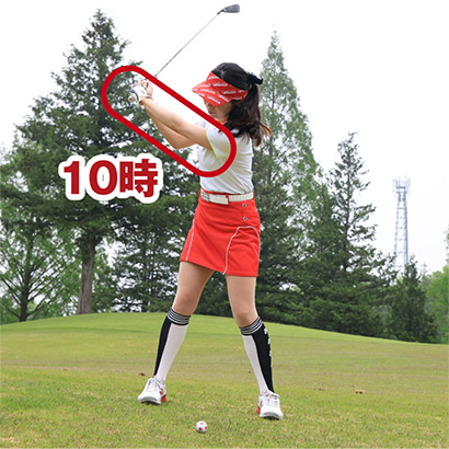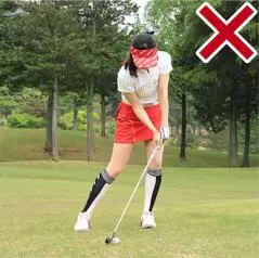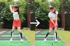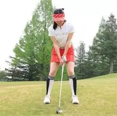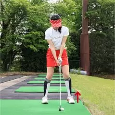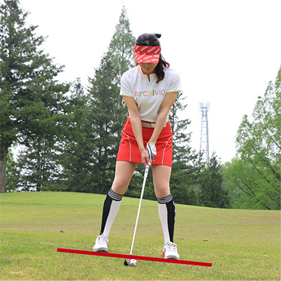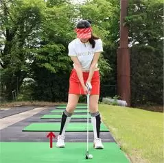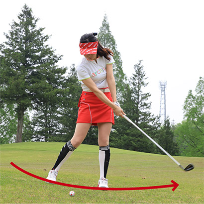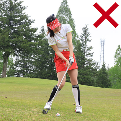 左足上がりは振ってから左足を下げる素振りをしておくと効果的!
