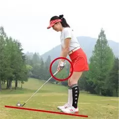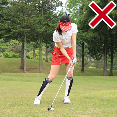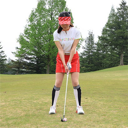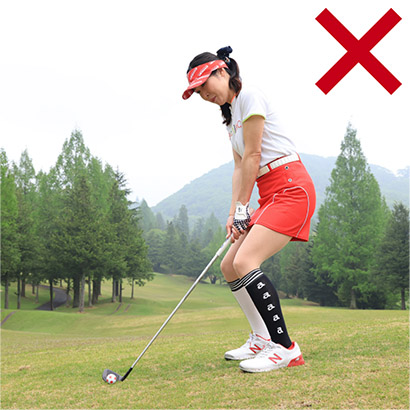 ・ツマ先下がりはクラブを通常の長さに持ち、腰を落とす