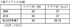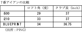 当時販売されていた下記の3モデルを試打しながら最終的に飛び系アイアンに分類される「i500」を購入しました。7番アイアンのロフト角を比べると、「i500」が29度に対し、「BLUEPRINT」は34度で、その差は5度。「i500」の8番アイアンのロフト角が33.5度でクラブ長が36.5inchなので、ちょうど1番手ぐらい違います。