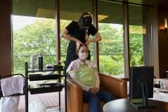 出場者には、ビューステージから新たに発売されたUVスプレーが配られたほか、クラブハウス内には、上位入賞者の賞品にもなる新製品のドライヤー「エレガンジェット」や、美容パネル「ビルガ」を展示し、試用を可能にしたり、頭の地肌の状態をチェックする毛髪診断や、同社が展開しているヘッドスパの体験コーナーを設け、ラウンド終了後に気軽に試せるようにして、試合に出場する以外の楽しみも提供。プレーはもちろん、魅せることにも気を遣う女子選手たちは、ビューティグッズの数々に興味津々。積極的に、さまざまな催しにトライしていた。