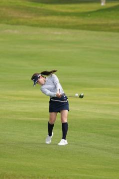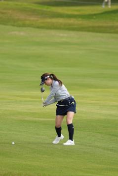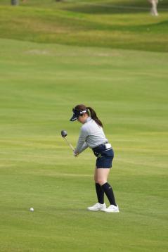 西村優菜 フェアウェイウッドスイング(斜め前方)|インパクト